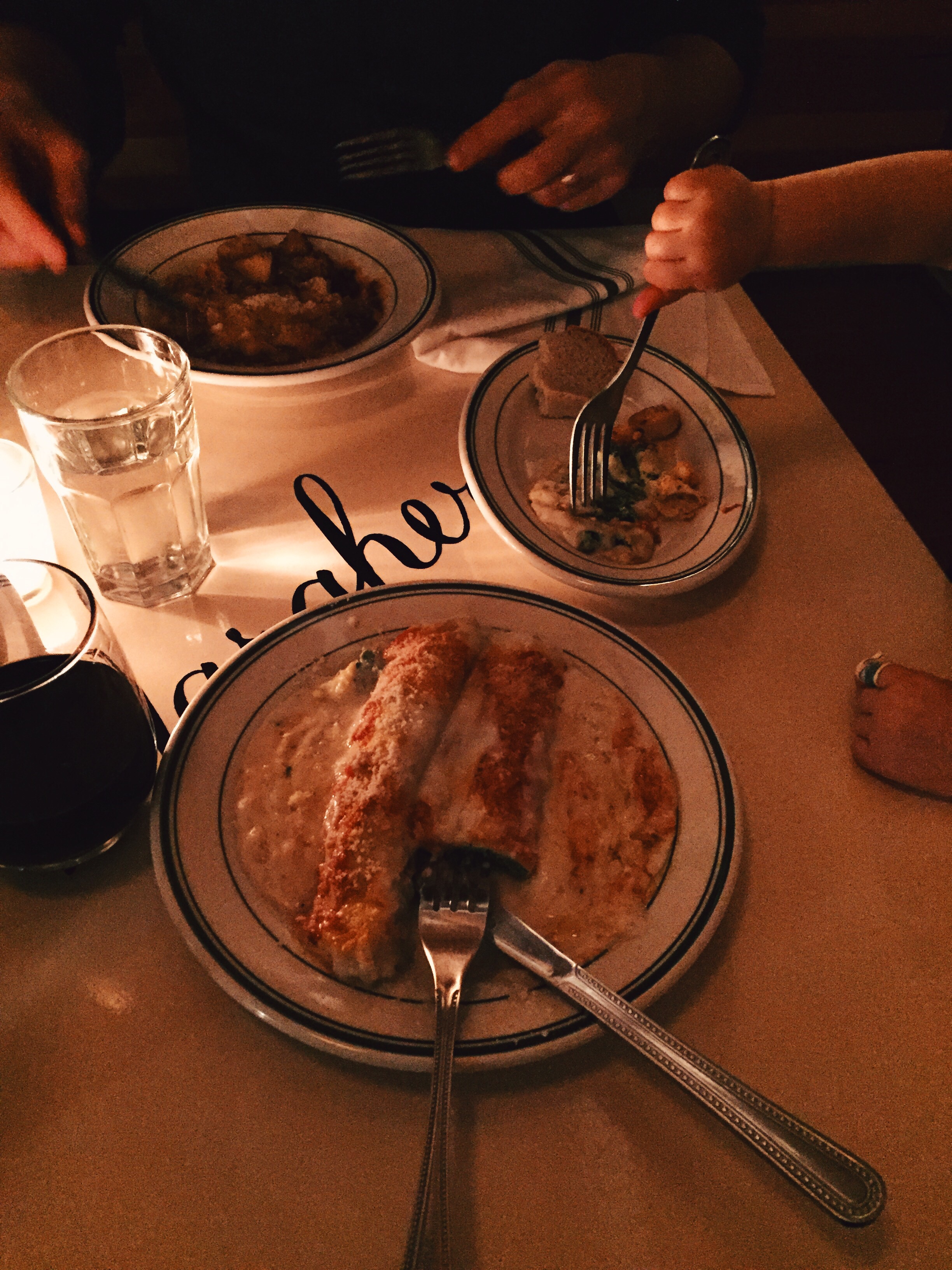 I think when Lucie heard Ted read “crêpes” off the menu, she thought “grapes” and got overly excited. When the crespelle arrived, they weren’t anything like fruit…but thankfully she still cleaned her plate.