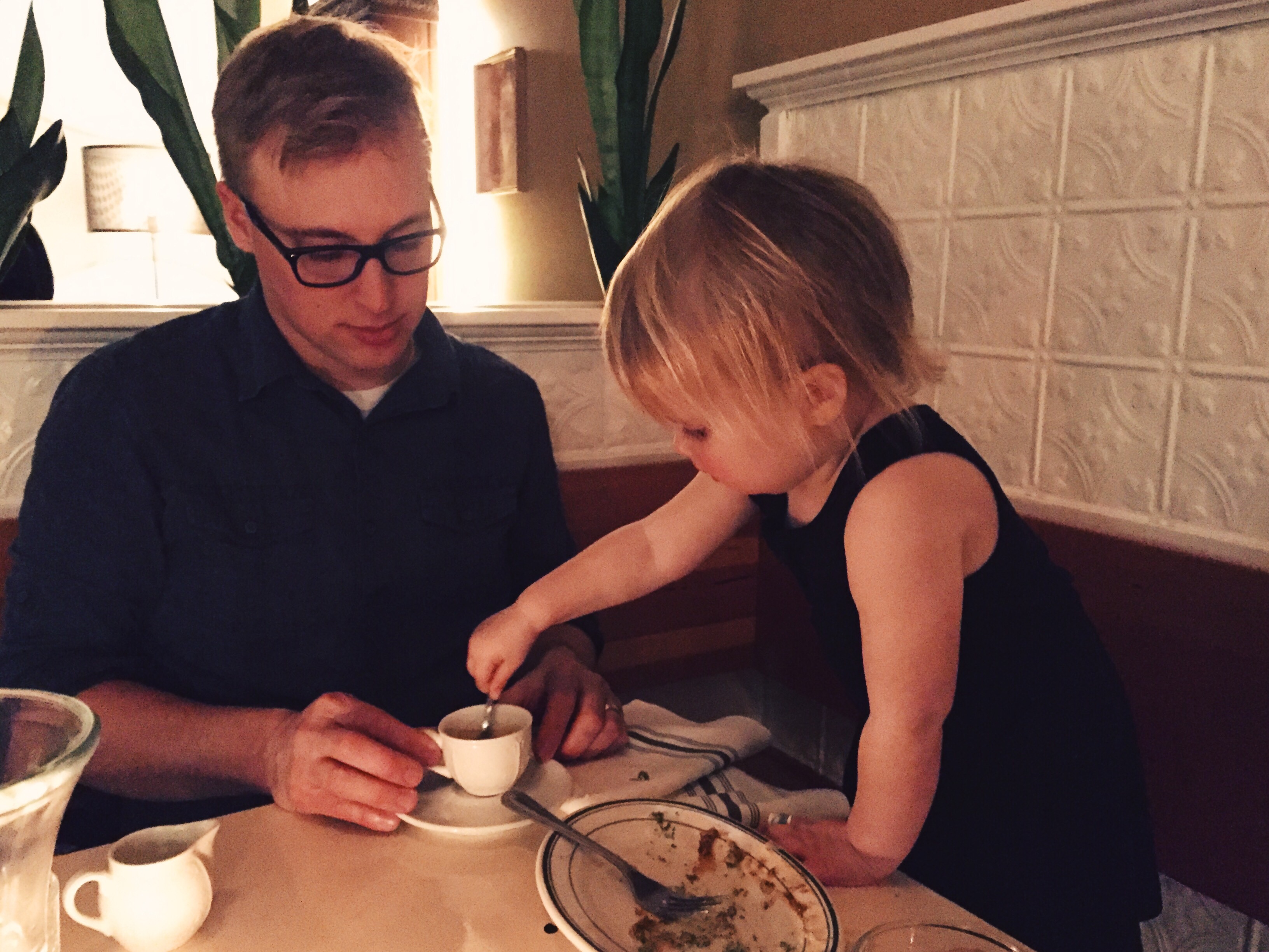 After dinner, Ted went for the classic espresso shot and gave Lu a taste. Thank heavens it was decaf. That’s all I can say.